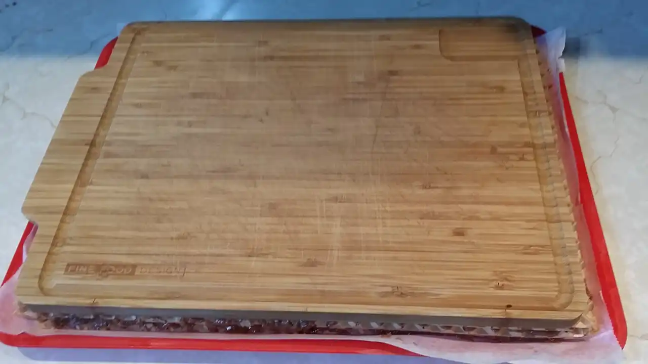 Oblandu zatim prekrijte papirom za pečenje, stavite neki teži predmet preko i sklonite na tamno i hladnije mesto da se lepo stegne pre nego što je poslužite.