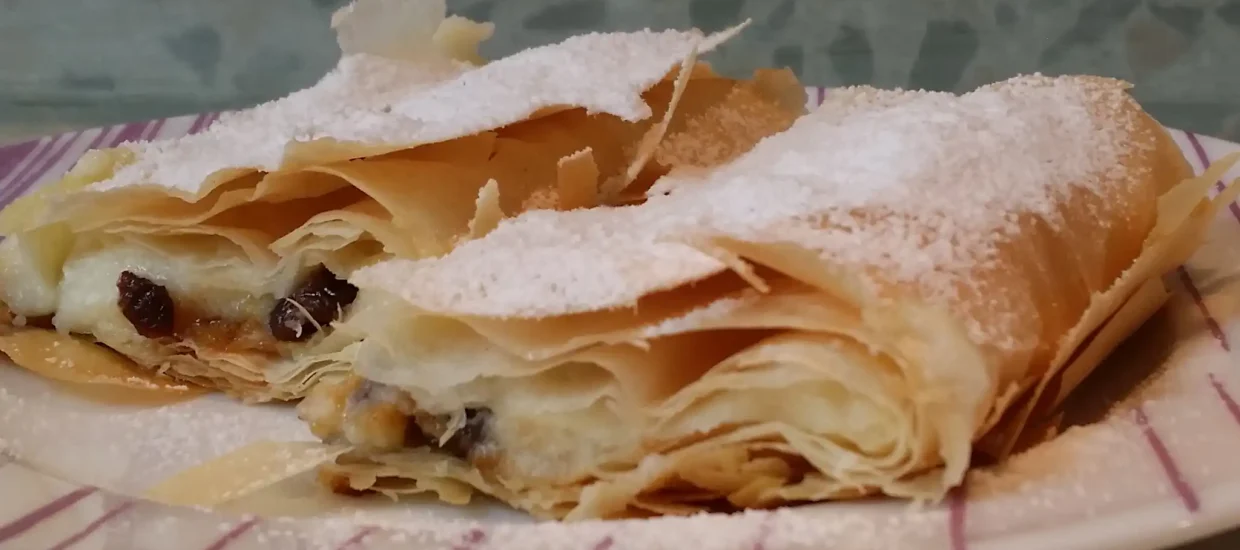 Meni su preostale šest tankih kora za pitu. Da bi dobila odličnu užinu, razmišljalja sam kojim nadevom da je punim. Došla sam na ideju za pitu sa grizom i suvim grožđem.