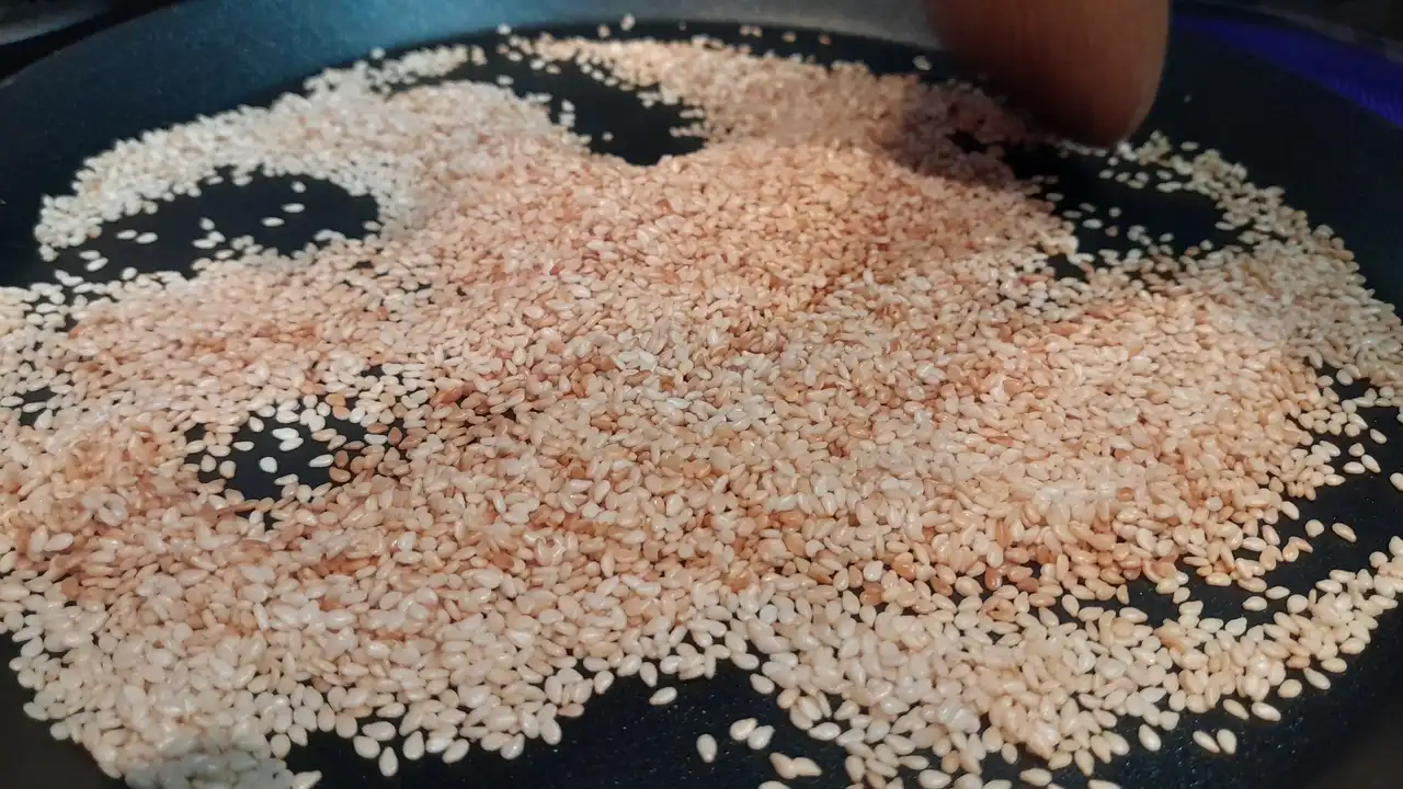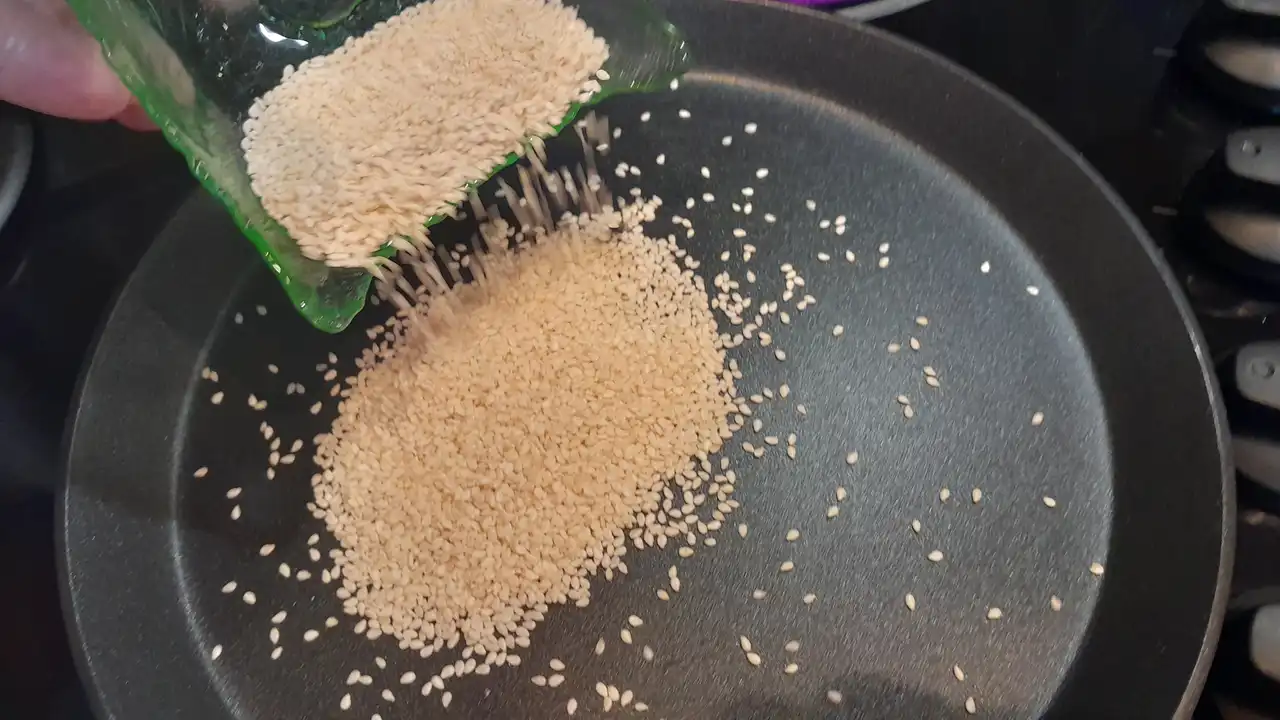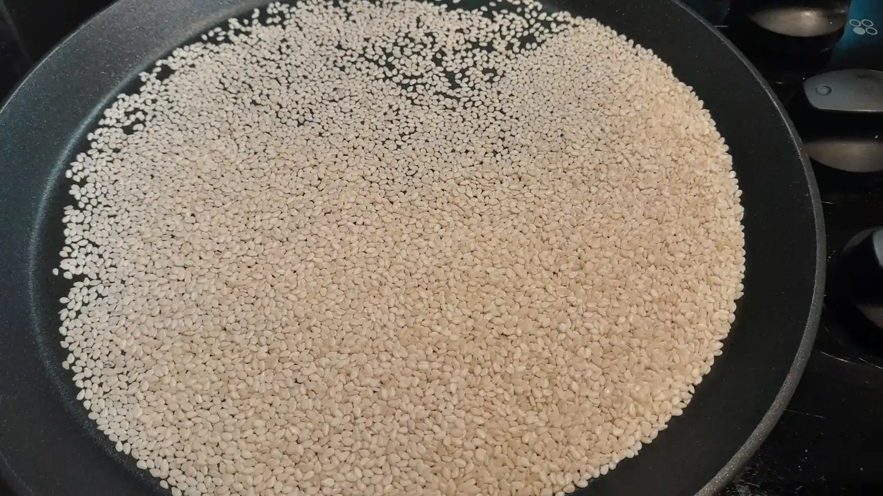 - Susam – prepečen na suvom tiganju dok ne počne lepo da miriše i postane zlatan, unosi onaj “crack” koji gricnete i iznova se zaljubite u salatu.