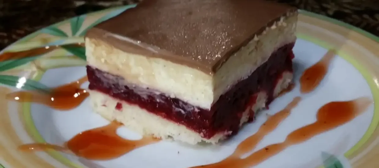 Osnova kolača čine nežne piškote koje upijaju sokove voća, stvarajući savršenu harmoniju ukusa. Na vrhu se nalazi kremasti fil od griza, koji dodaje bogatstvo i kremastos, dok se sve to preliva sa glazurom od čokolade, koja kolaču daje dodatnu slatkoću i vizuelnu privlačnost.