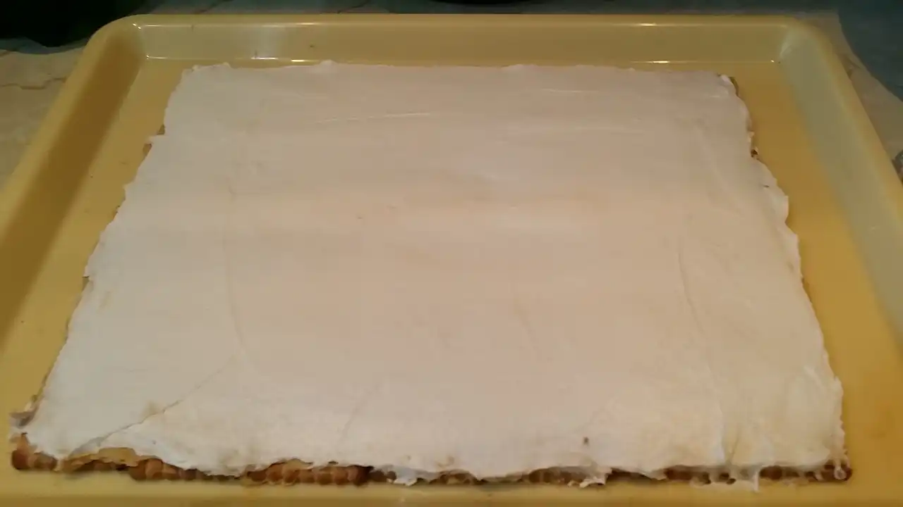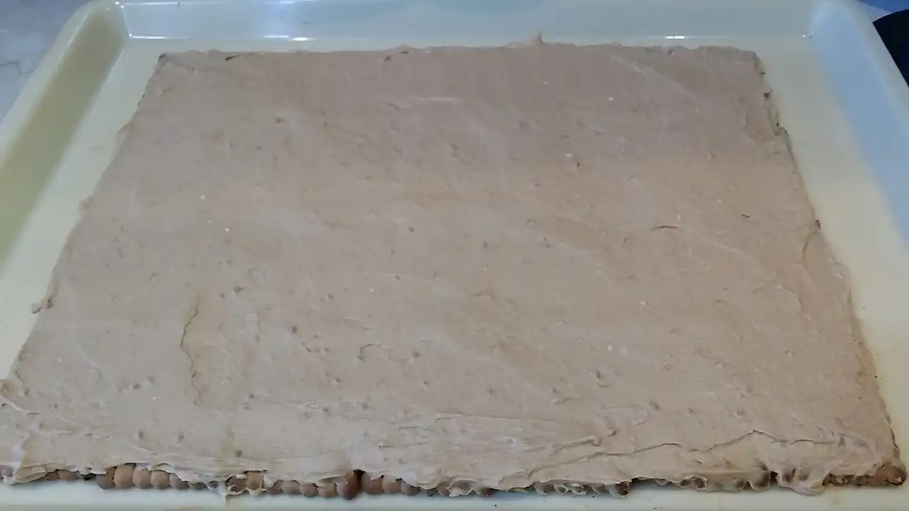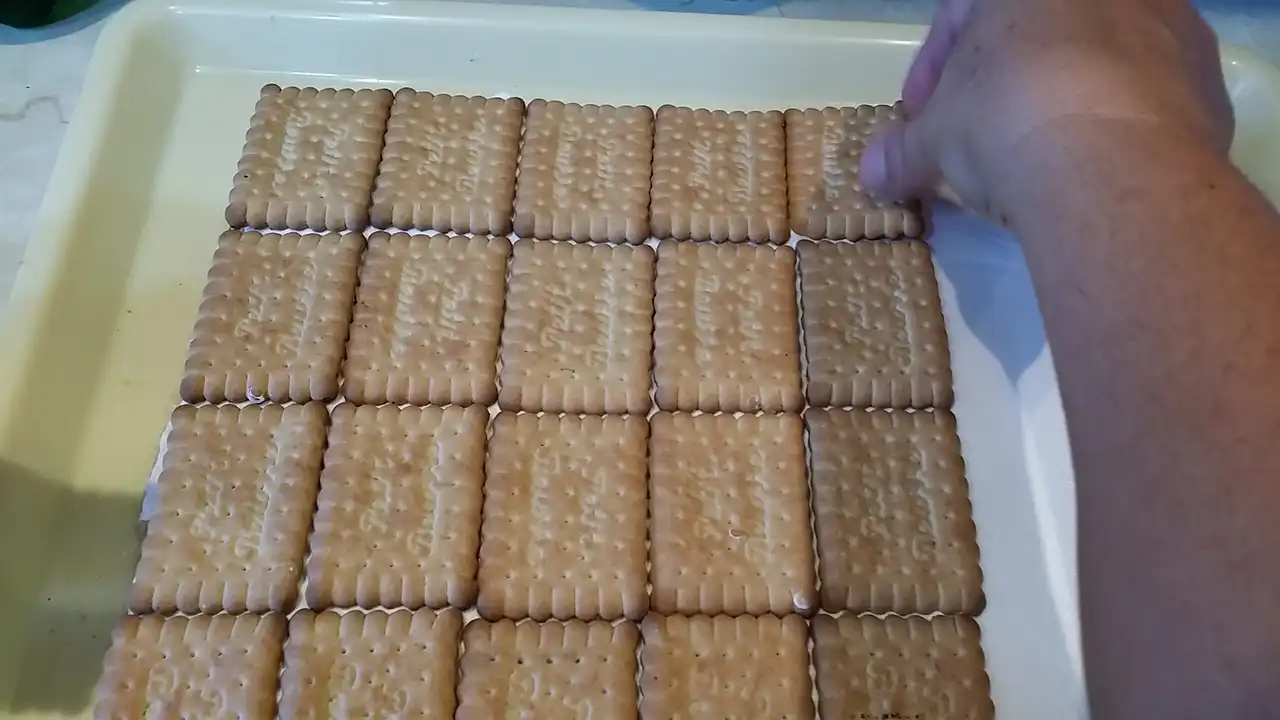 Važno je da prvi sloj keksa postavite pažljivo, jer dok filujete taj prvi sloj, keksići mogu malo kliziti. Zato bih vam preporučila da za prvi sloj koristite obruč za torte, kako bi lepo držao oblik i olakšao dalju pripremu. Nakon što postavite prvi sloj, sve ostalo ide lako!