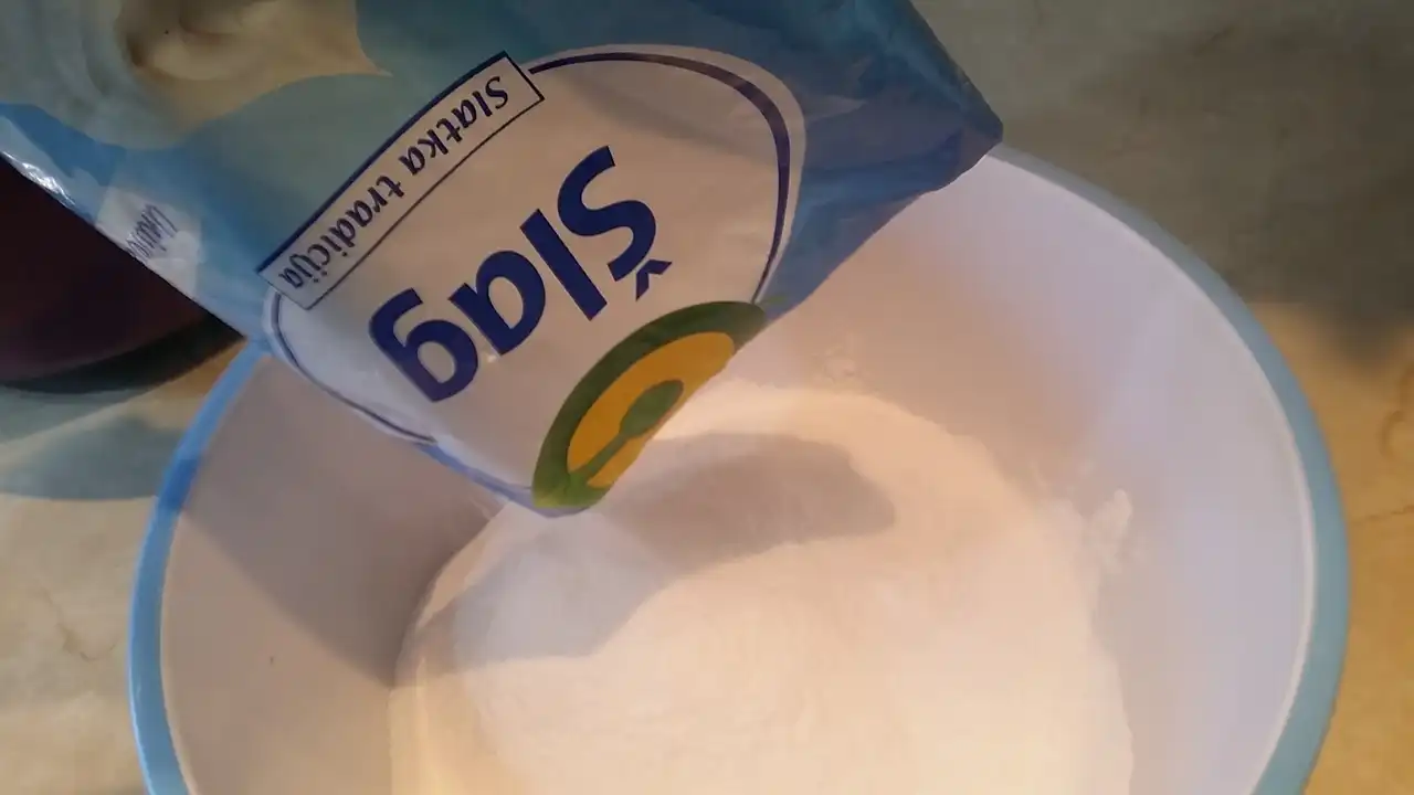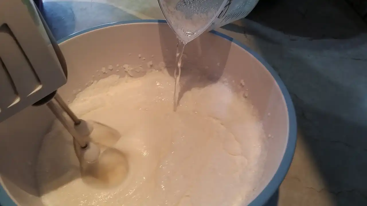 U odgovarajuću, dublju posudu sipajte prašak za šlag, pa polako dodajte mineralnu vodu.