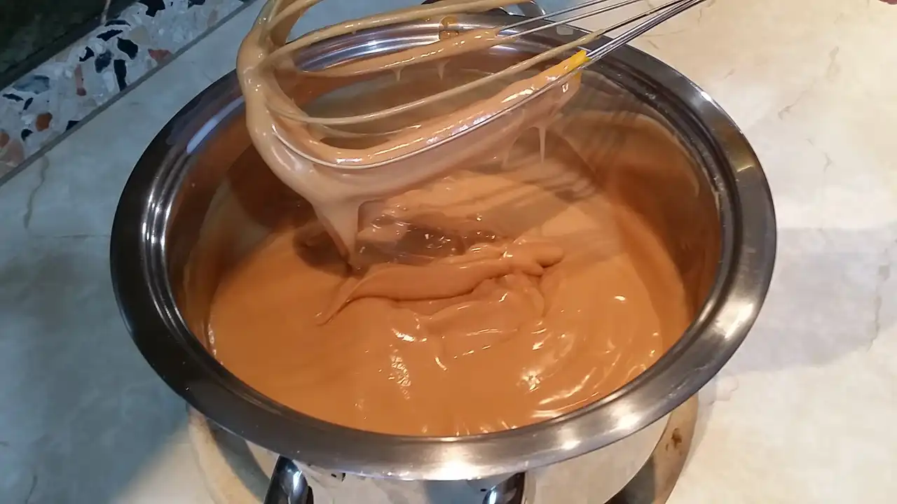 U šerpu u kojoj ćete kuvati puding sipajte preostalih 12 kašika šećera i na laganoj vatri počnite da ga topite. Važno je da polako grejete šećer i pripazite, ne dozvolite da zagori, jer bi u suprotnom ukus bio gorak.